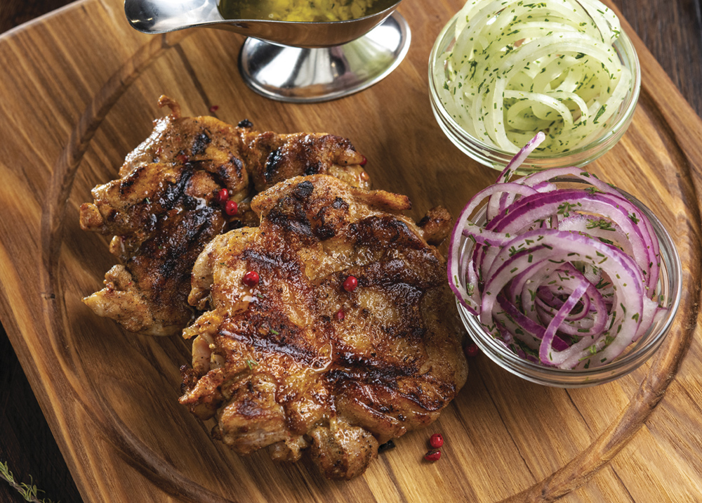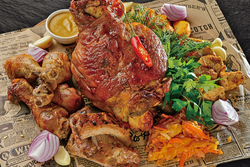 рулька свиная, ребрешки свиные, голень куриная, картофельные дольки, горчица, соус Барбекю