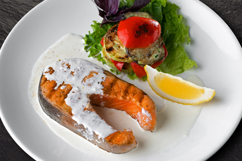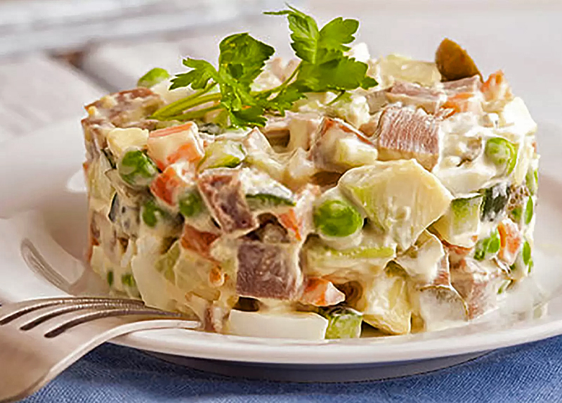 Суп «Дальневосточный» | Картофельная запеканка | Салат «Оливье» с малосольной рыбой | Напиток на выбор: чай, кофе, морс