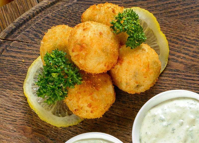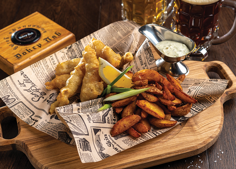 картофель фри, картофельные чипсы, гренки из ржаного хлеба, кольца кальмара, луковые кольца, соус тар-тар, кетчуп